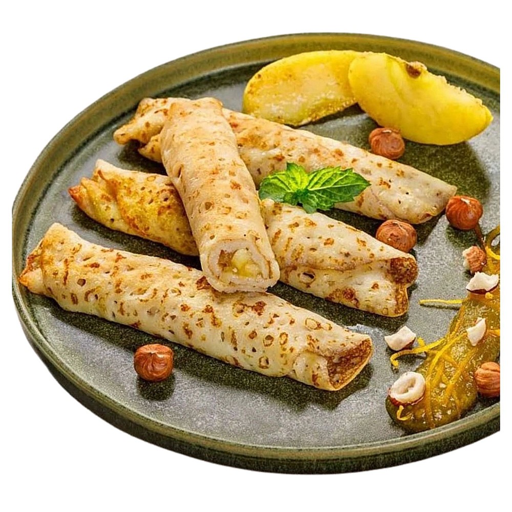 Мягкие и ароматные блины с яблочной начинкой “Французские” — отличный выбор для вкусного завтрака или лёгкого десерта дома. При выпекании они становятся слегка золотистыми, а сочная яблочная начинка сохраняет натуральную сладость и аромат, буквально тает во рту. По желанию их можно подавать со сметаной, любым соусом или вареньем, но даже без добавок эти блины невероятно вкусные и сочные.