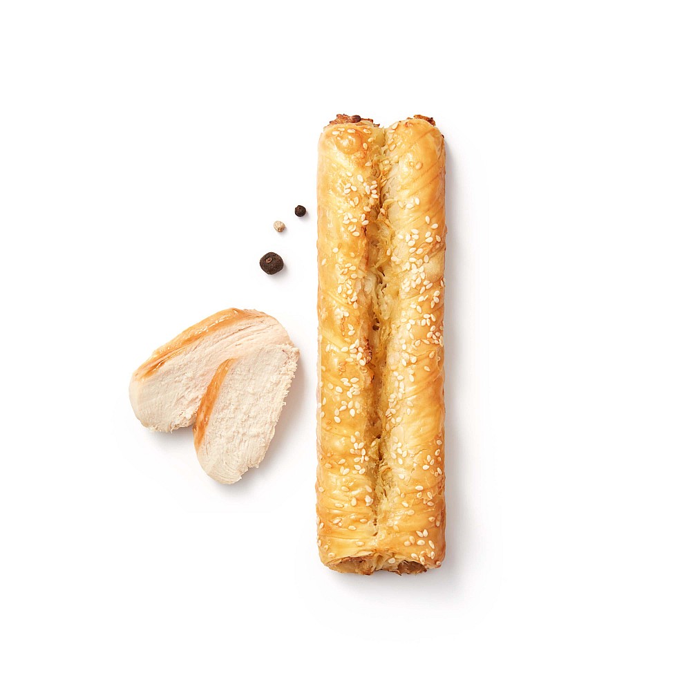 Хрустящие rollini из тонкого теста Filo с куриной начинкой — ароматная и сытная закуска с насыщенным вкусом. При выпекании тесто становится лёгким и хрустящим, а сочная начинка раскрывает яркий и насыщенный вкус курицы. Отличный вариант для быстрого перекуса, обеденного перерыва или закусочного стола. Вкусный и удобный выбор, когда хочется чего-то тёплого, сытного и аппетитного.